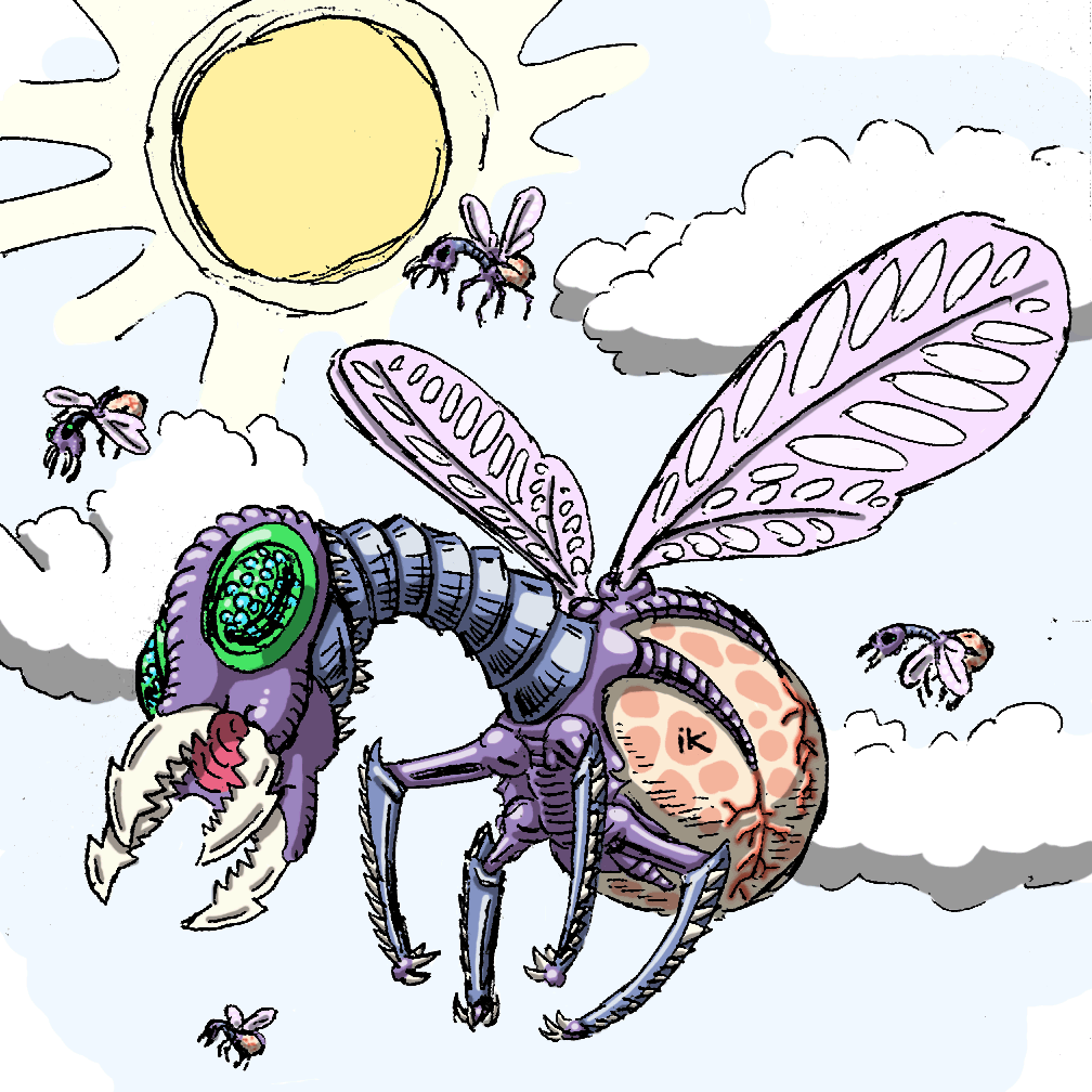Senses: A piranha bee's eyes are multifaceted, and each is set within a gelatinous ovoid of green bioluminescent material. When prey is sighted, and "tasted," its eyes flash brightly alerting other scouts and sentries nearby, all the way back to the hive. The resulting swarm response is immediate.
